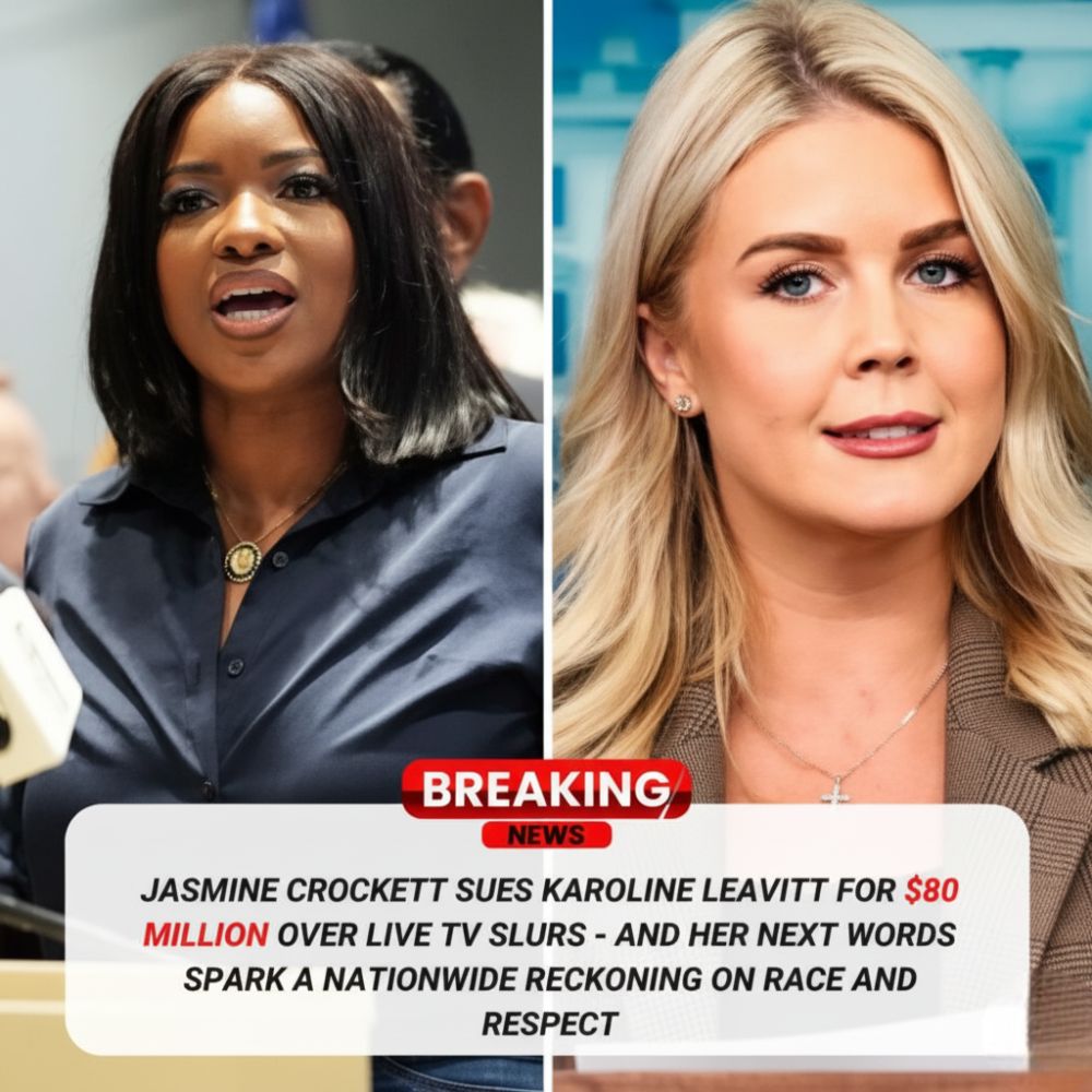 Washington, D.C. — What began as a tense on-air exchange has erupted into one of the most explosive political and media controversies of the year. Representative Jasmine Crockett (D-TX) has filed an $80 million lawsuit against political commentator Karoline Leavitt, accusing her of making “serious racial slurs” during a live television segment that quickly went viral.