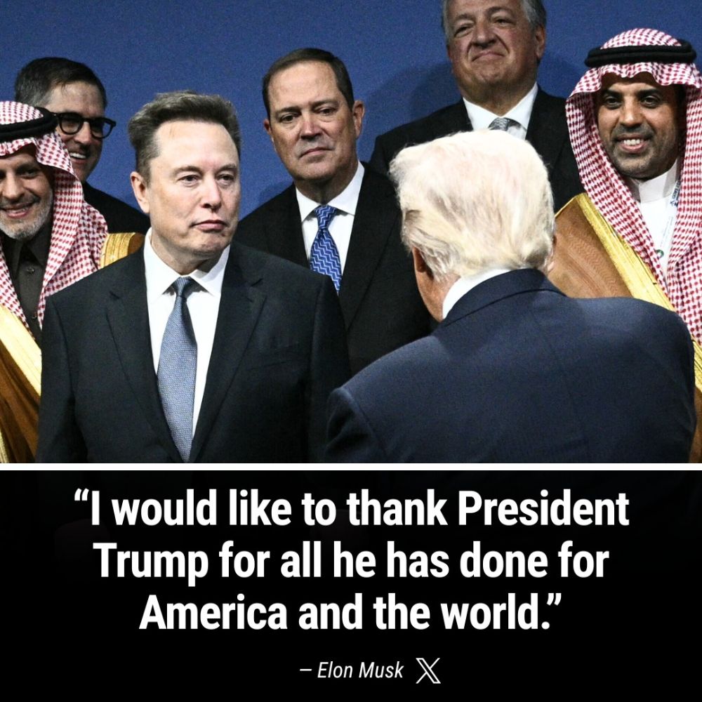 “I would like to thank President Trump for all he has done for America and the world,” Musk wrote on X, along with pictures of him standing alongside Saudi Crown Prince Mohammed bin Salman, NVIDIA CEO Jensen Huang and Trump at the US-Saudi Investment Forum in Washington, DC.