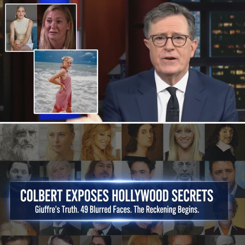 The report began under the familiar bright lights of Colbert’s studio, but the atmosphere quickly shifted from entertainment to investigative journalism. Behind the host, a screen displayed a montage of blurred silhouettes, sealed documents, and fragmented testimonies, setting the stage for a deep dive into the accounts surrounding Virginia Giuffre. The segment contended that for years, a coordinated effort involving intimidation and influence had successfully kept crucial information from public view.